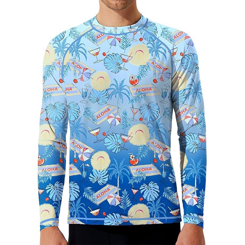 Men’s Swim Shirts Rash Guard UPF 50+ Long & Short Sleeve UV Sun Protection Summer Shirts Fishing Hiking T-Shirt