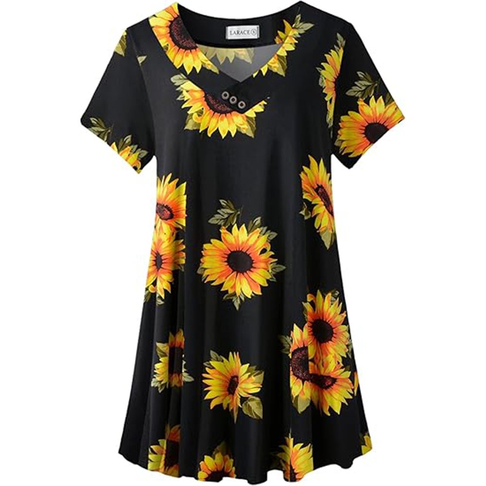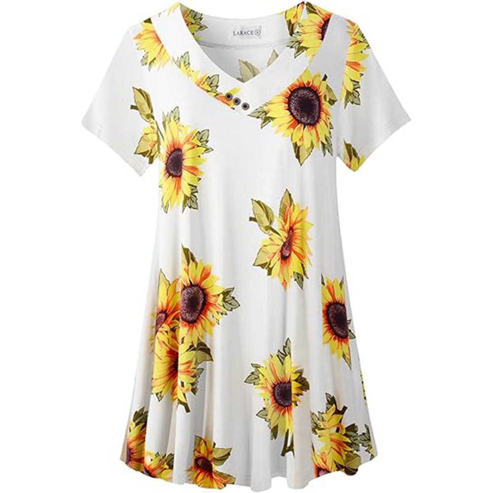 Plus Size Tops for Womens T Shirts Button Down Summer Clothes Short Sleeve Tunics Casual V Neck Blouses