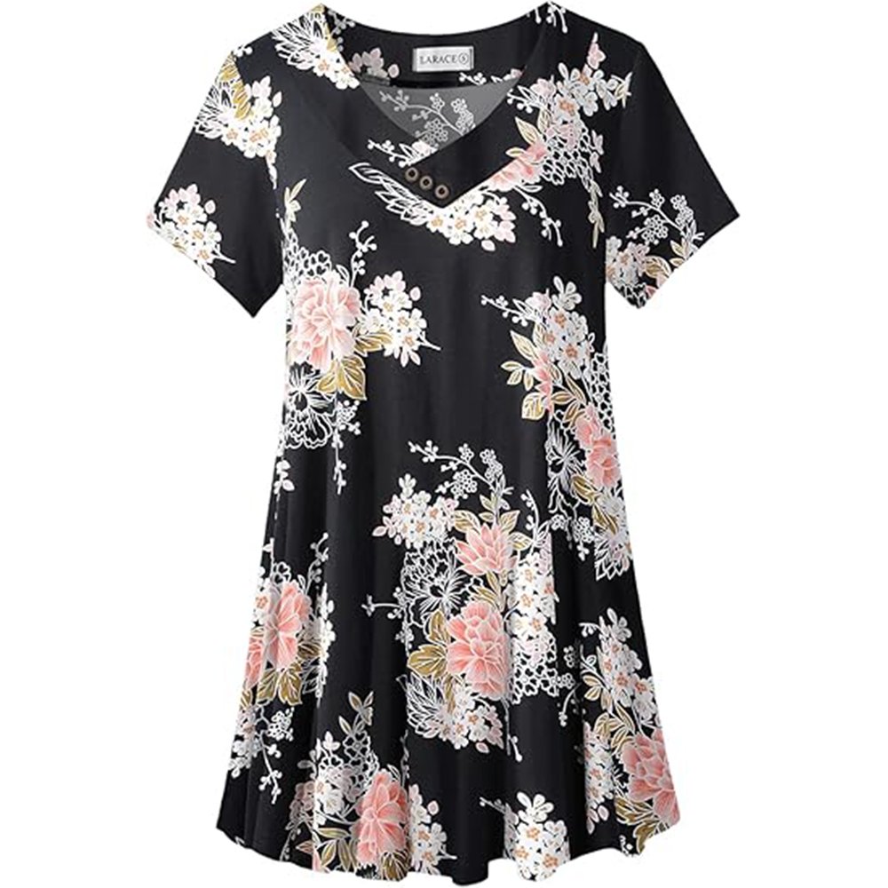 Your not to be missed one – Are you searching for cute clothes for women? LARACE womens v neck t shirts can show your temperament well. Classic and cozy v-neck decorated with buttons, showing your slender neckline and creating a special slim visual effect. Chic floral blouses for womens t shirts are not to be missed!