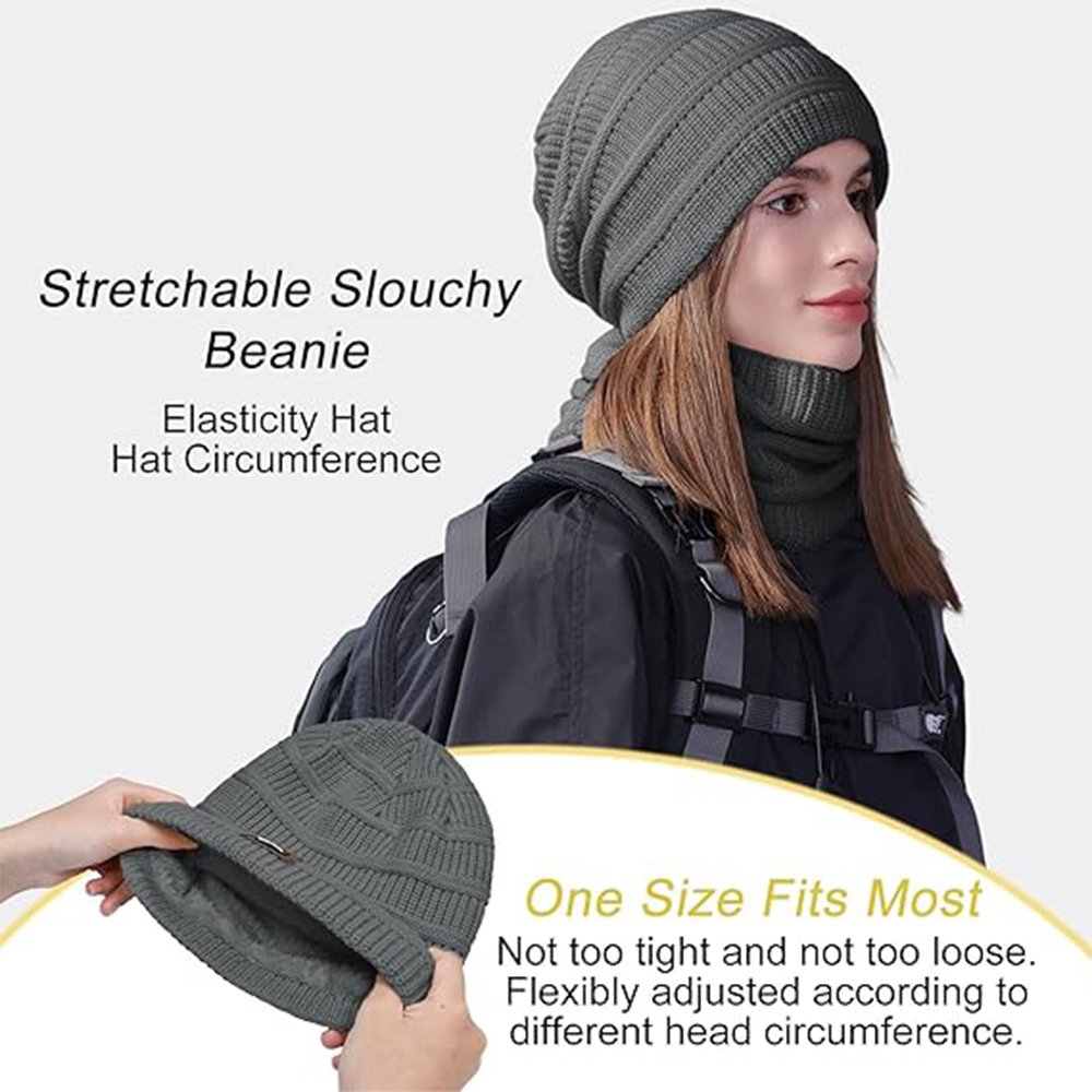 Set of Knit Slouchy Hat and Scarf: We offer two shopping options: a single cable knit winter hat or a beanie hat and scarf set. You can choose to purchase our thick skull cap alone or pair it with our neck warmer scarf. This skull cap and neck warmer set is ideal for outdoor activities such as walking, hiking, cycling, fishing, skiing, and more.